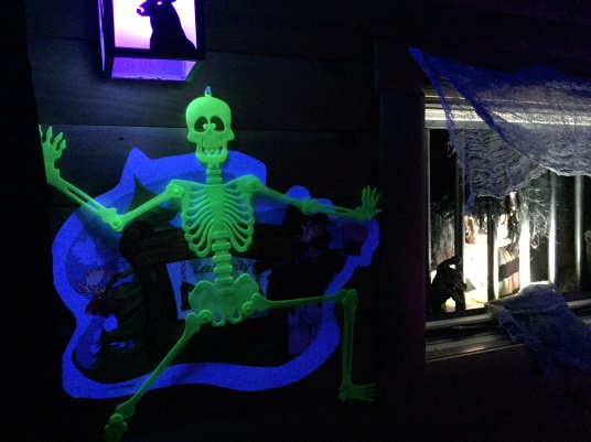 We let you in on a little secret before about a new Halloween scene Michael otherwise known as “Spicy” (Special Operations) had in the works for the Halloween party and all groups who recently toured Inventionland got a sneak peek at the exterior of the scene – a new Inventionland haunted house set that was built in the Packaging department’s Creativity Cabin!